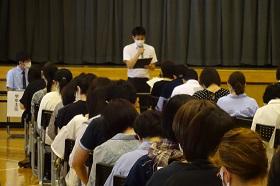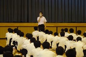 「3年生のこの時期は大事な時期、目の前のやらなければいけないこと(進路を決めていくこと)に向き合ってほしい。2年間積み上げてきたものは非常に大きなものがある。自分に合った企業・大学が必ず見つかる。頑張ってほしい。また生徒指導にかかるようなことはしない。SNSへの書き込みに注意する。これからは、一日一日を大切に、今日できることは今日のうちにやり遂げ、明日やることを今日やるような心構えを持って生活してほしい。」