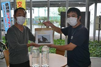 本校を代表して、膳亀保健課長が消毒液等を受け取りました。