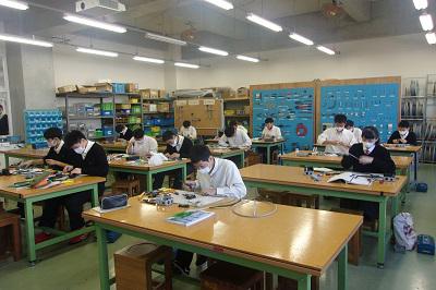 総合的な学習の時間(キャリア教育)の一環として来校、実習棟にて工業科すべての授業見学を行い、