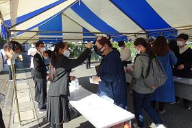 10月24日(土)秋晴れの下、令和2年度蒼穹祭が開催されました。今年の蒼穹祭は新型コロナウイルス感染防止のため、一般公開は行われず、参加者は生徒とその保護者2名以内に限定し、さらに参加する保護者には、事前に参加申込書を提出、入場時には生徒名と家族名を記入した入場券を受付に提出いただき、検温をさせていただきました。また来場者の集中を避けるため、入場時間を学年別に分けての開催となりました。
