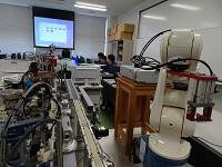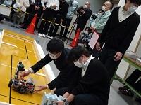 「自律制御ロボット部門」の第一試合は、本校と島田工業校の対戦になりました。どちらも、昨年度まで本校で勤務されていた松原先生に指導を受けています。
