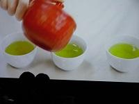 蓋をして60秒後、急須から茶碗に「回し注ぎ」を開始します。