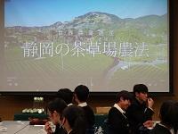 本校の前身である静岡工業高校電気工学科を卒業された原田全修様が講師を務めてくださり、世界農業遺産「静岡の茶草場農法」の茶葉を使って、本格的な呈茶を体験させていただきました。