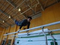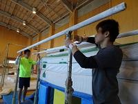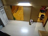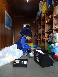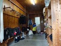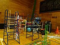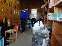 ステージ横の器具室から、中に入っているものをすべて外に出して掃除します。
