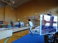 教室の放送の状況をトランシーバーを使って確認し、開始しました。