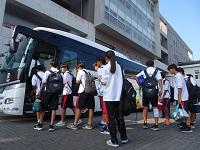 早朝、サッカー部の生徒たちが愛知県への遠征に出発しました。