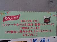 8月29日(木)、今日の科学技術高校食堂では、スペシャルメニュー第一弾として、「ステーキ宮のたれ使用 特製ハンバーグ」の予定でしたが、臨時休校のため、後日あらためて提供されることになりました。