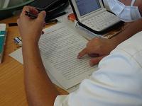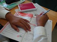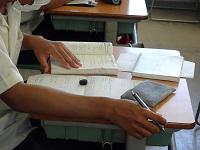 図書室では、練習の合間の時間を使って、陸上競技部の生徒たちが勉強していました。