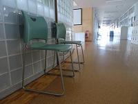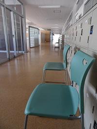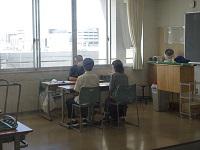 生徒昇降所では、勉強や休憩、お弁当を食べている生徒たちがいました。