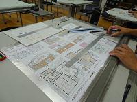 建築デザイン科2年生 夏課題の店舗兼住宅の設計に取りかかっていました。