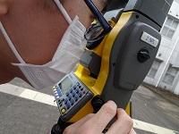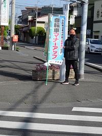 職員が通学路に立ち、あいさつを交わしながら、交通安全を呼びかけています。