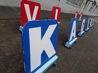 入学式会場の看板前には記念撮影の長い列ができていました。