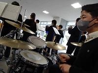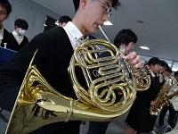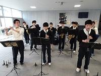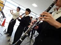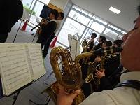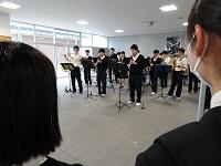 吹奏楽部が生徒昇降場でミニ演奏会を開いていました。