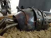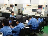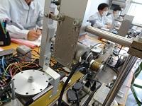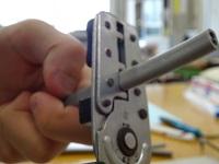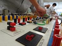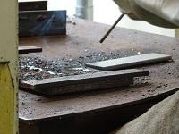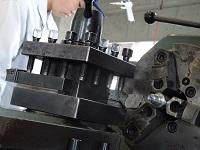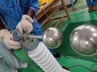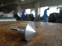 アルミニウムを旋盤で加工し、コマを削り出していました。