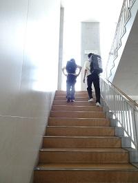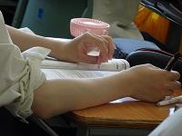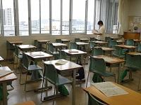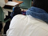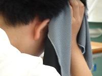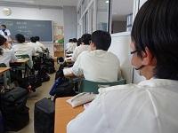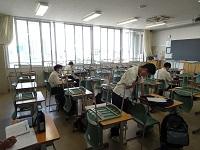 徒歩や自転車で登校、汗がにじみ出てきます。教室のサーキュレーターで涼んでいました。