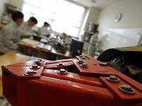 理数科3年生が「科学技術応用」で、機械工学(旋盤加工)の実習を行っていました。