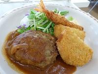 日替わりランチは「ハンバーグ&ミックスフライ定食」です。