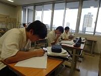 6月26日(月)、放課後、建築デザイン科の生徒たちが製図に取り組んでいました。