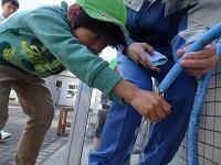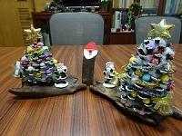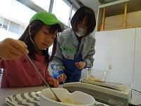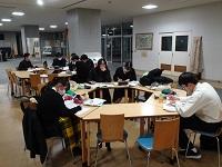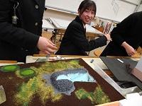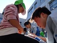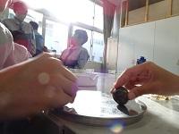 園児が帰った後、生徒たちが預かった泥だんごの仕上げをしました。