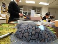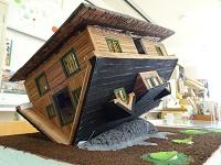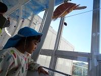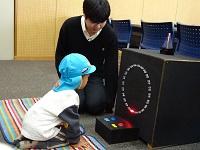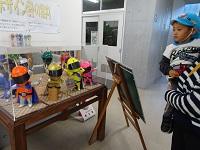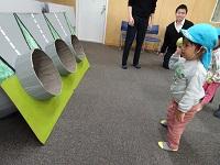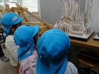 建築模型に興味津々。「これ知ってる、グランシップだよ。」