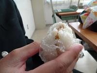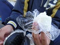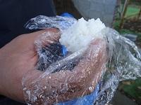 自分で握った塩むすびを食べて頑張ります。