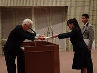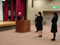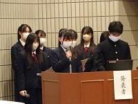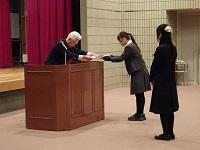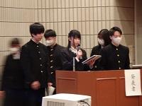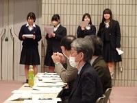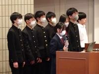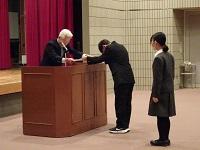 会議に先立ち、「蒼穹祭」同窓会企画の真空管アンプによる原音視聴のアンケート回答者の中から選ばれた在校生3名に、記念品が授与されました。