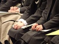 演奏してくれる生徒たちが最終確認をしています。