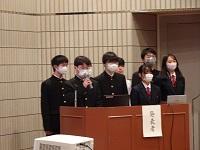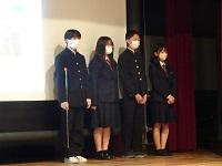 生徒ホールで整列してあいさつしました。
