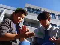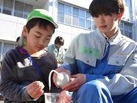 11月28日(火)、静岡市立長沼こども園の園児たちが来校し、都市基盤工学科3年生の生徒たちと泥だんごづくりに挑戦しました。