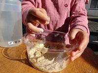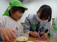 泥だんごの材料になるさらさらの土の粉を計ります。
