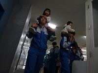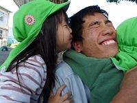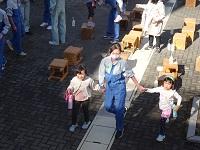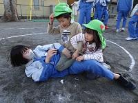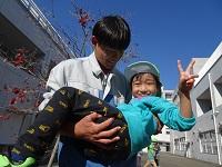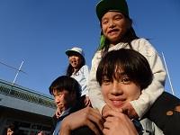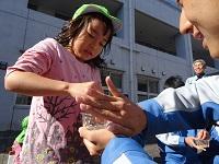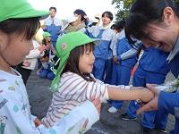 園児たちが生徒たちに駆け寄ります。
