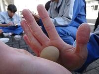 泥だんごが出来上がりました。生徒たちが預かって仕上げを行います。