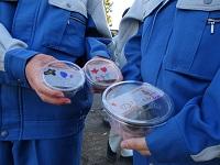 完成した泥だんごを園児たちに届けに行きます。