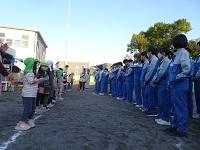 最初に整列してあいさつしました。