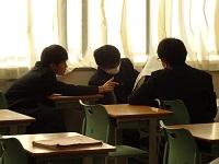 早めに登校して授業の準備などをする生徒たち。