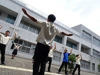 7月3日(水)、テスト終了後、応援指導部が短時間の練習を行っていました。
