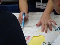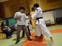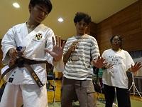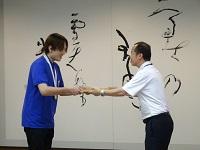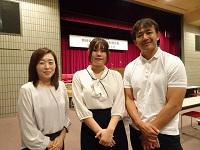 発表が終わって審査を待つ間、松本さんに県教育委員の小野澤様と天城様が話しかけてくださいました。