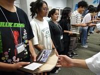 訪れた中学生や保護者の皆様をはじめ、農業高校の生徒の皆さんも、チラシを手に取ってくださっていました。