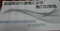 9月28日(土)、静岡農業高校の学校見学会が開催され、その一角をお借りして、科学技術高校のブースを設けさせていただき、10月26日(土)「蒼穹祭 一般公開」・11月16日(土)「オープンスクール」のチラシを配布しました。