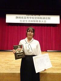 東部・中部・西部地区の予選で選出された1年生から4年生の代表生徒が発表を行いました。本校定時制から、松本さん(4年生)が、「本気の証」という題名で発表し、「NHK静岡放送局長賞」を受賞しました。