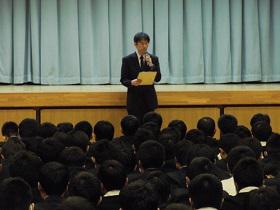 まず生徒課の先生から、「自動車運転免許取得、アルバイトに関する決まりごとの確認。常識を踏まえ高校生最後の冬休みをしっかり過ごすこと。本校は学業優先であること」等の話がありました。
