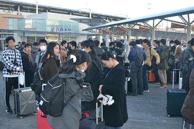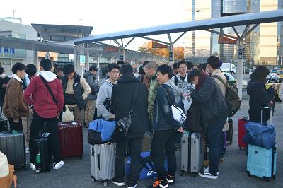 12月6日(金)の夜、2年生が九州方面への修学旅行から帰ってきました。東静岡駅解散・静岡駅解散のクラスが