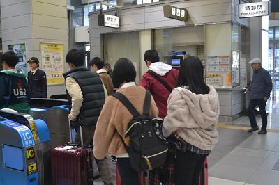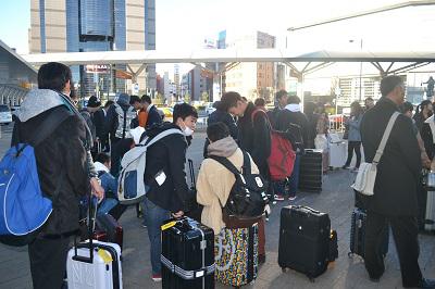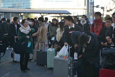 新幹線への乗車風景です。生徒の明るい表情に安心させられました。