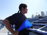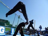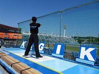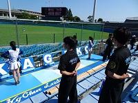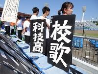 試合終了後、応援指導部、生徒会、応援委員の生徒たちが協力して手際よく撤収しました。