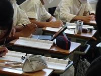 早めに登校して授業の準備などをする生徒たち。