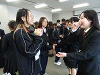 歓迎セレモニーに続いて、本校生徒のリードでアイスブレーキングを行いました。ゲーム形式でペアを作り、互いに自己紹介しあいました。