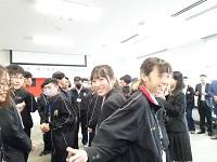 続いて、情報システム科、建築デザイン科が到着。次に電気工学科、機械工学科、最後はロボット工学科、都市基盤工学科、理数科が到着しました。