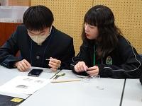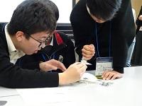 午後は、機械工学科1年生とともに「金属折り鶴づくり」に挑戦しました。