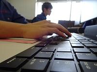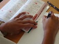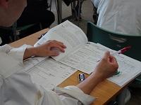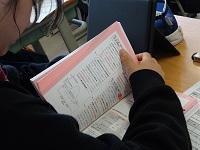 先輩たちが残してくれた大学受験報告書のファイルに真剣に目を通していました。