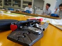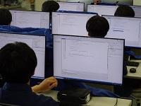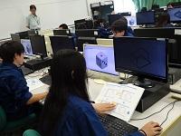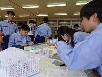 理数科の生徒たちが工業科の専門的な授業を受けています。